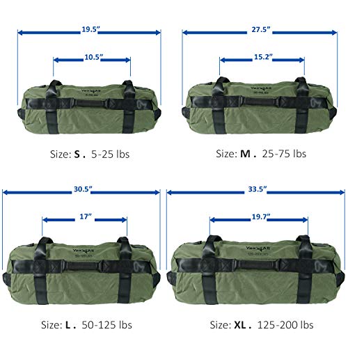 JUST THE RIGHT SANDBAG: Yes4All Sandbags come in a variety of colors and capacities so you can choose the exact bag for your level of fitness and training goals: S (5-25 lbs), M (25-75 lbs), L (50-125 lbs) & XL (125-200 lbs)