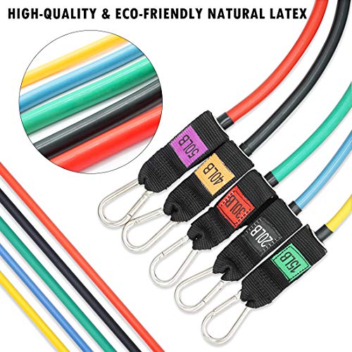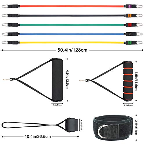 Material: Both of the training tube set and resistance loop bands are made of Eco-friendly NATURAL LATEX (instead of tpe), which is known for its impressive durability and resilience. High strength metal buckle, thicker ankle traps and cloth connector, non-slip comfortable handle and firm door anchor. With its sturdy build and expert craftsmanship, you can use these exercise bands for several years.